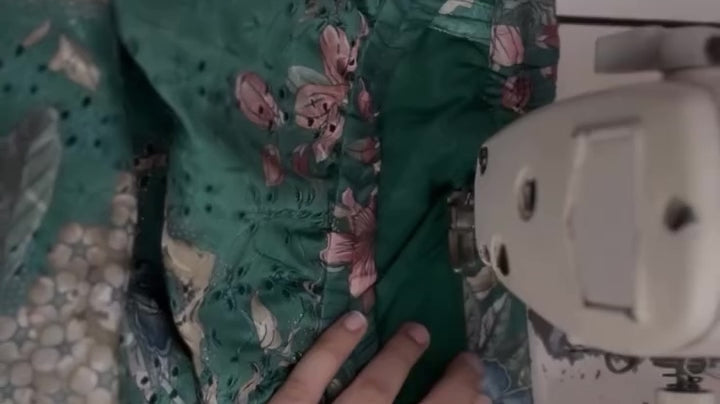 Pure premium Silk Chanderi fabric featuring intricate handcrafted thread work and elegant digital prints, combining traditional artistry with contemporary style.